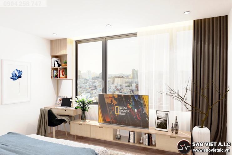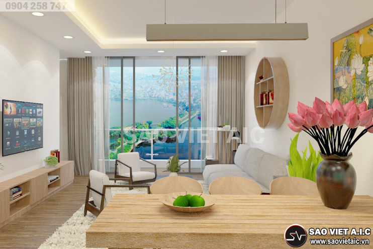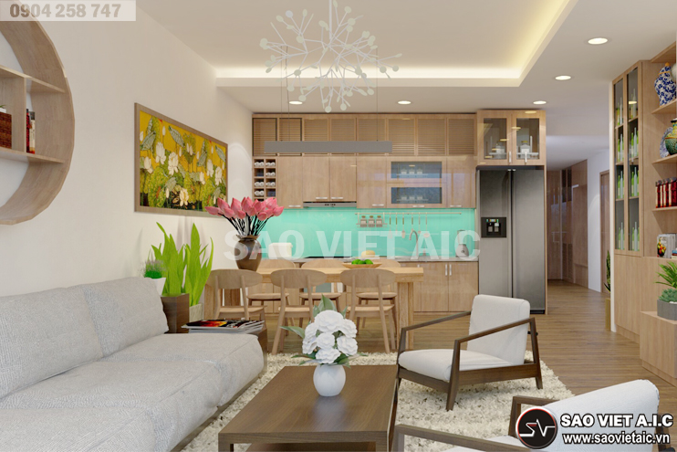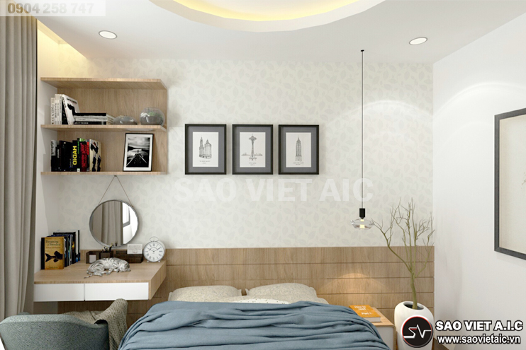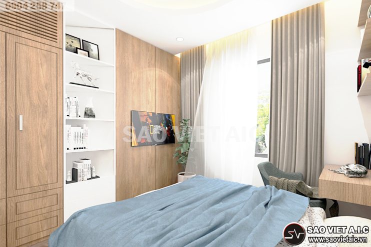" SaovietAIC trân trọng kính mời quý vị đến tham quan công trình mới được thiết kế, thi công theo phong cách hiện đại, chất liệu gỗ verner sồi kết hợp với sơn trắng tao nên không gian ấm cúng mà thoáng đạt, sang trọng mà đầy đủ tiện nghi! "