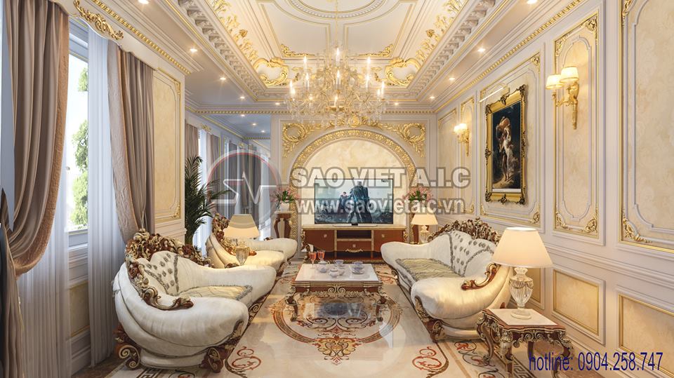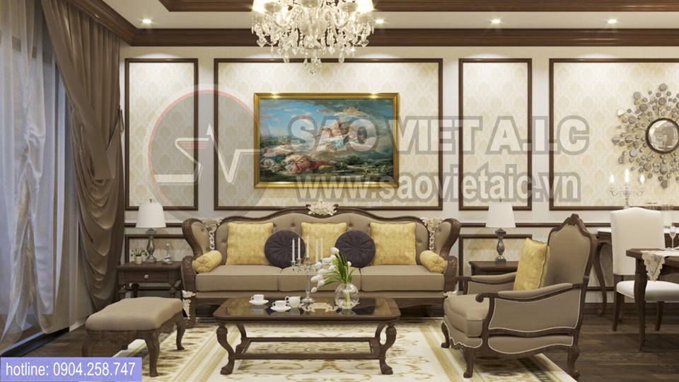 Thiết kế phòng khách Tân Cổ Điển Biệt Thự Starlake Thiết kế và thi công: Công Ty CP Kiến Trúc Và Nội Thất Sao Việt