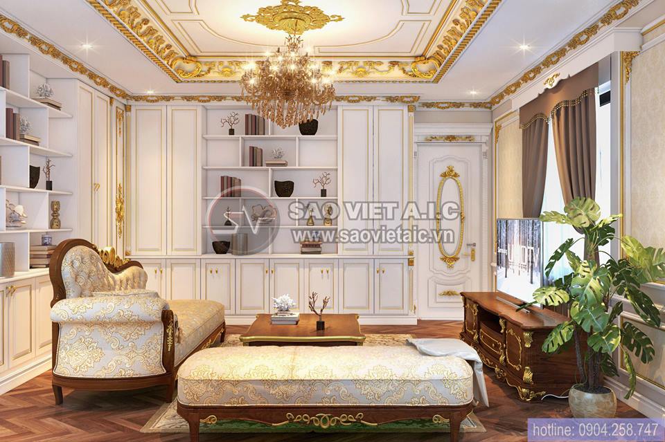 • THIẾT KẾ NỘI THẤT PHÒNG KHÁCH TÂN CỔ ĐIỂN BIỆT THỰ STARLAKE