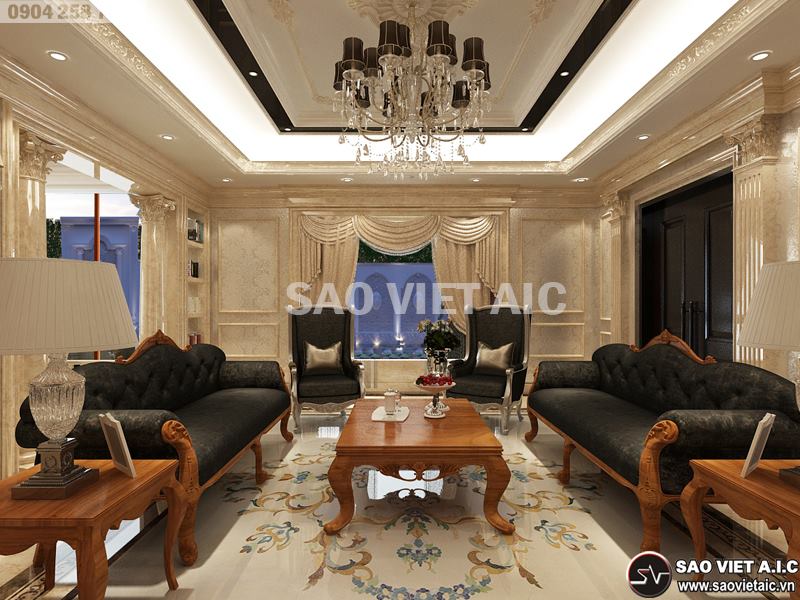 THIẾT KẾ NỘI THẤT PHÒNG KHÁCH TÂN CỔ ĐIỂN​ - BIỆT THỰ STARLAKE
