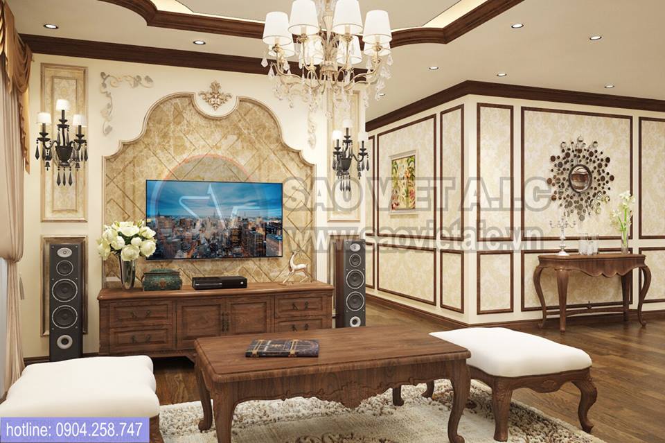 THIẾT KẾ NỘI THẤT PHÒNG KHÁCH TÂN CỔ ĐIỂN BIỆT THỰ STARLAKE