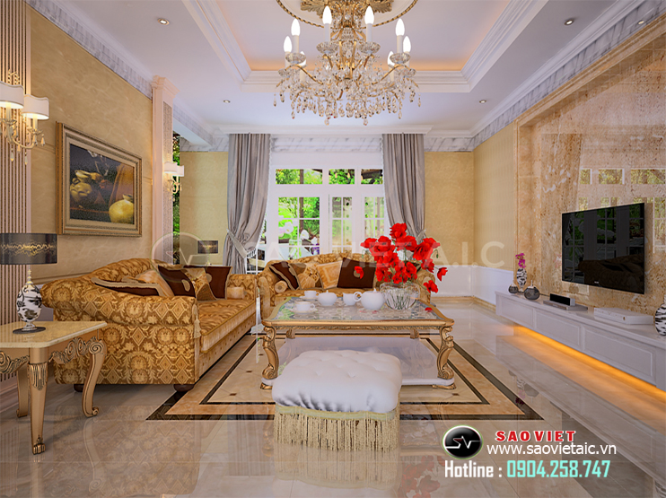 Thiết kế phòng khách Tân Cổ Điển Biệt Thự Starlake Thiết kế và thi công: Công Ty CP Kiến Trúc Và Nội Thất Sao Việt