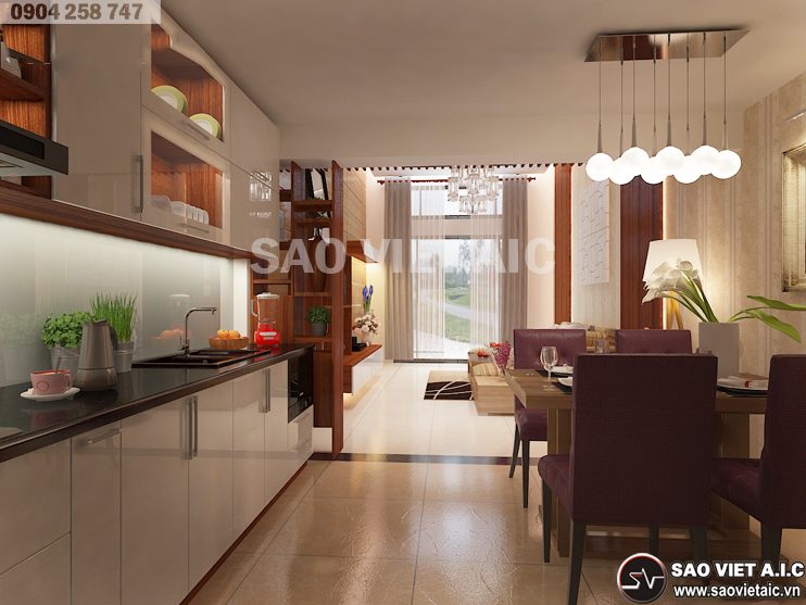 • THIẾT KẾ NỘI THẤT CHUNG CƯ - KHÁCH BẾP