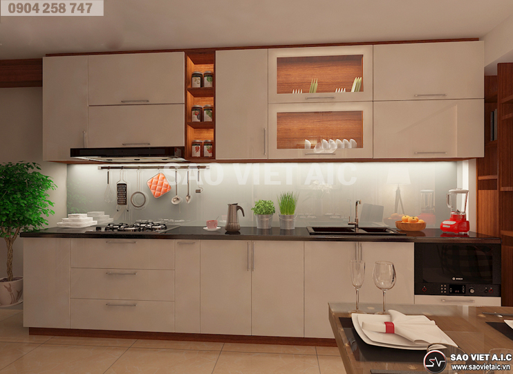 Phòng bếp được thiết hiện đại và tiện nghi mang đến không gian nấu ăn thoáng đãng