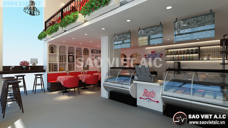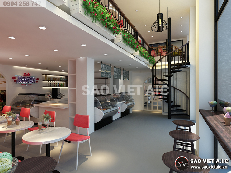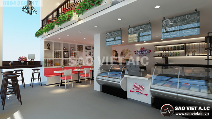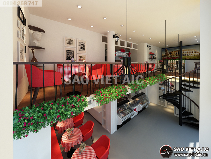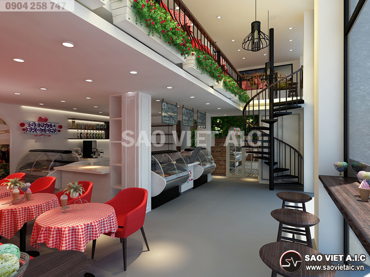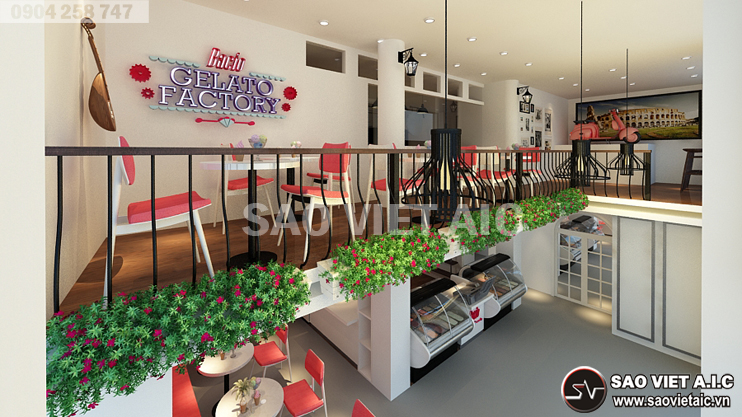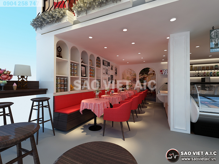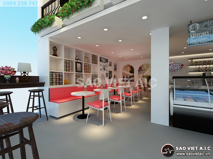 Gelato là một thương hiệu kem nổi tiếng của Ý, được lấy cảm hứng từ đời sống người Ý. Với sự yêu thích văn hóa Ý nói chung, món kem Gelato nói riêng, chị Thảo đã mở cho mình một cửa hàng kem tại số 2 Đội Cung, Lê Đại Hành, Hai Bà Trưng, Hà Nội. Sau thời gian tìm hiểu, chị đã chọn Sao Việt là đơn vị Thiết Kế Nội Thất Cửa Hàng Kem Gelato. Các kiến trúc sư SaovietAIC tư vấn thiết kế với hai phương án mang đậm phong cách Ý. Bản thiết kế nhận được sự hài lòng và đánh giá cao của chị. Dưới đây là một số hình ảnh Thiết Kế Nội Thất Cửa Hàng Tuyệt Đẹp của chị Thảo do SaovietAIC thiết kế.