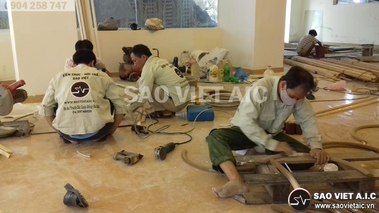 Các công nhân SaovietAIC đang thi công ở trên tầng 2 của nhà hàng