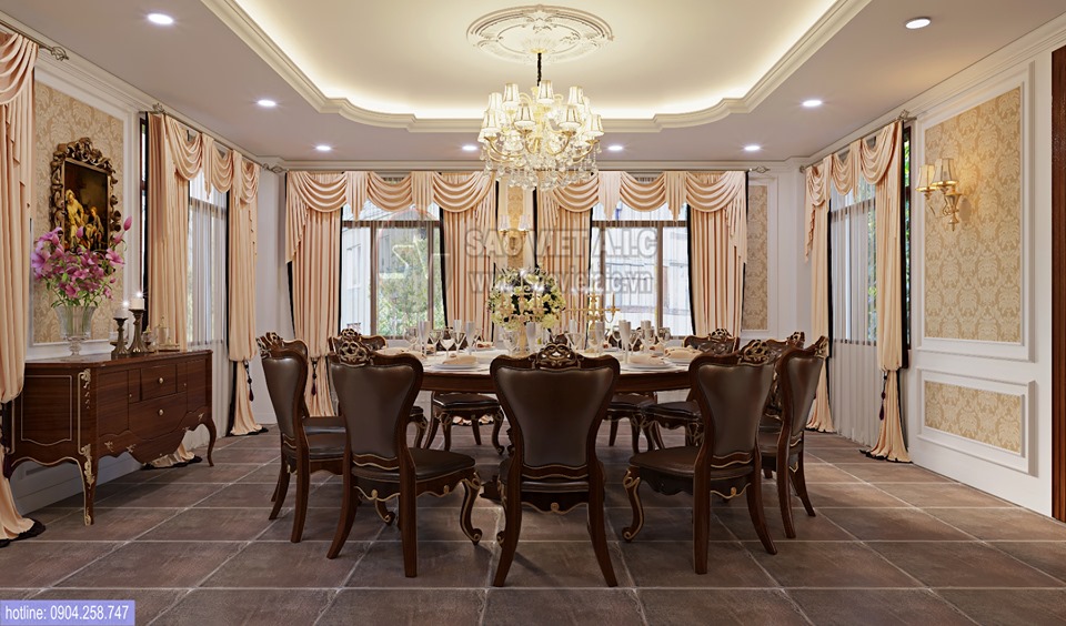 Thiết kế nội thất phòng ăn Tân Cổ Điển tập đoàn DABACO
