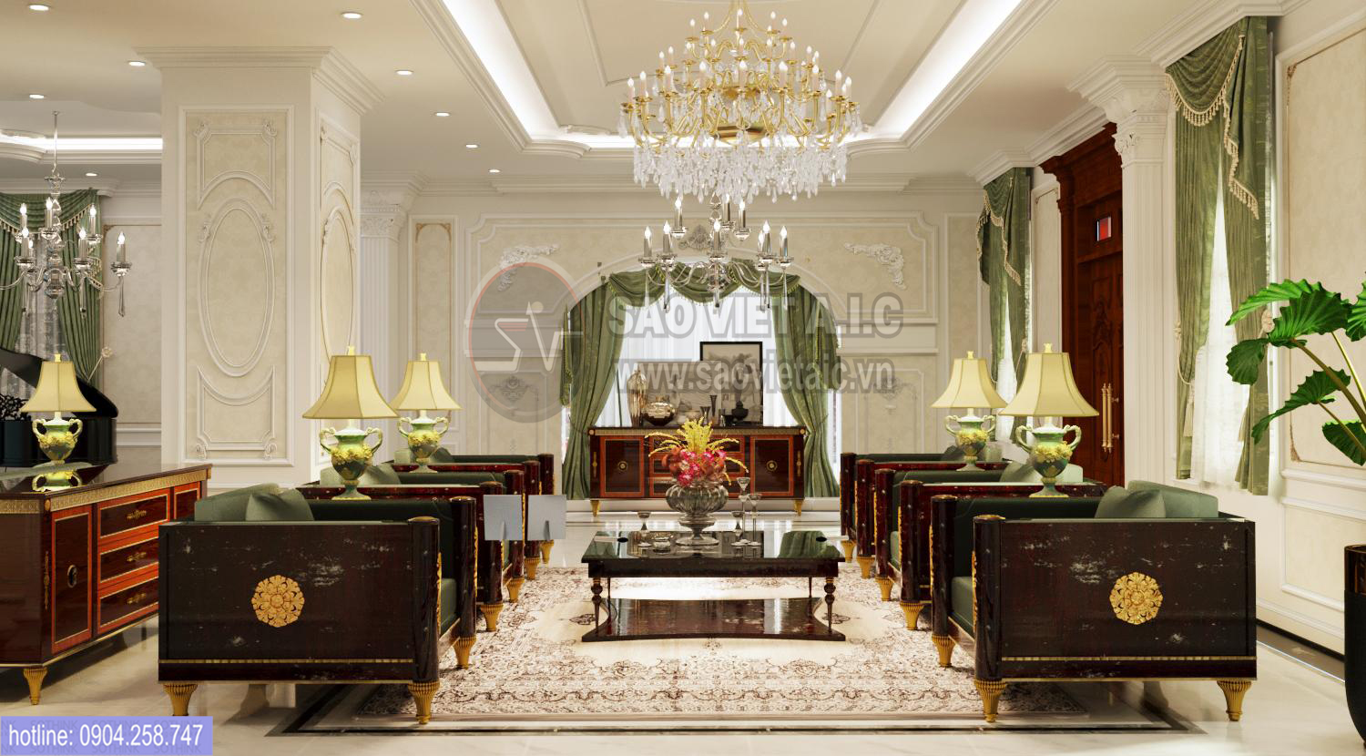 THIẾT KẾ NỘI THẤT PHÒNG KHÁCH BIỆT THỰ PHAN DÌNH PHÙNG