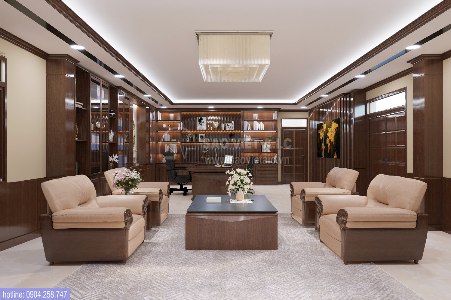 🏤 Thiết kế - thi công nội thất phòng làm việc của Phó Chủ Tịch huyện Kim Thành- Hải Dương