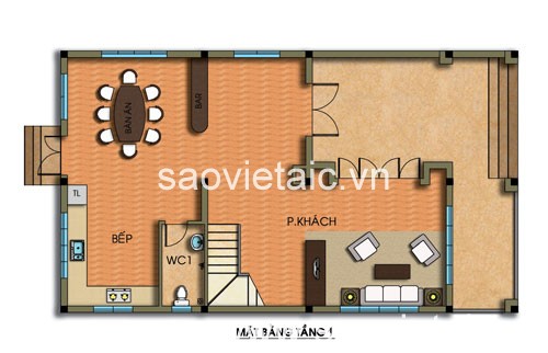 Tầng 1: 1 p.khách, 1 wc, 1 bếp
