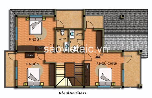 Tầng 2: 2 p.ngủ, 2 wc